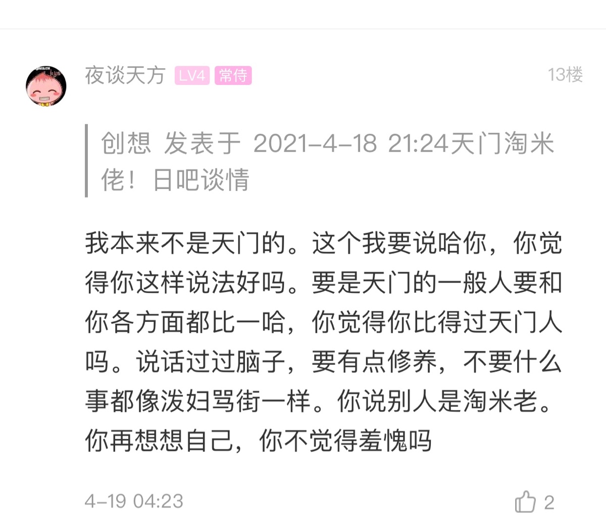 这是我看到的一位仙桃高素质网友,说话有理有据.喜欢把别人踩在脚下而抬高自己的人都是没素质的人不招人喜欢。在网上发表自己的观点要就事论事,对事不对人.不做言语攻击。一个人也好一座城也罢应良性竞争.争当第一今天你领先了不要有优越感,今天我落后了不代表我永远落后.发表自己的观点为自己所在的城市争发展是好的,但应据理力争有理有节摆事实讲道理。不要一开口就骂人,脏话连篇.相信绝大多数网友都是理性的讲道理的好网友。看到一段理性的发言也能让人眼前一亮。