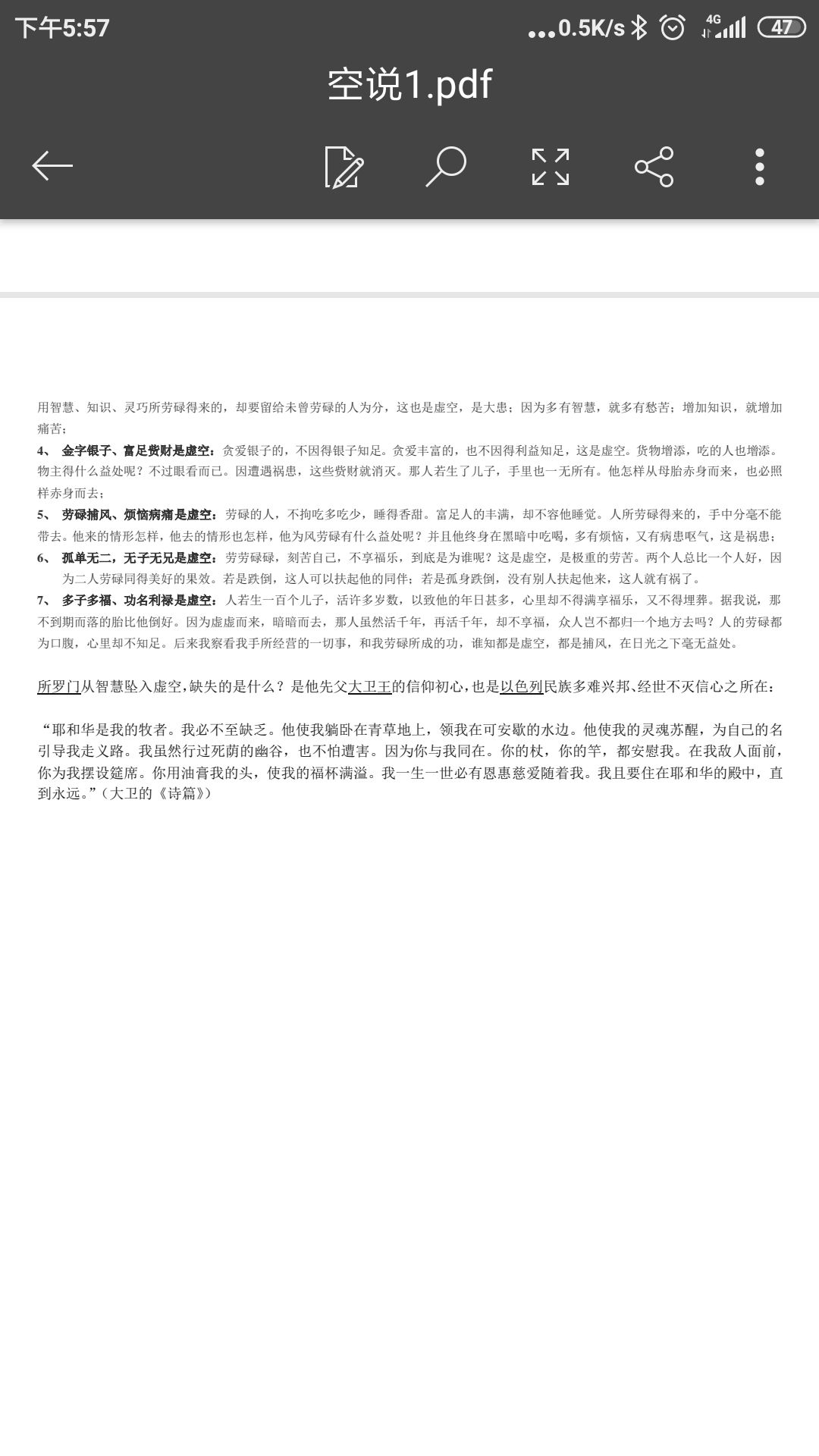 4、 金字银子、富足赀财是虚空:贪爱银子的,不因得银子知足。贪爱丰富的,也不因得利益知足,这是虚空。货物增添,吃的人也增添。