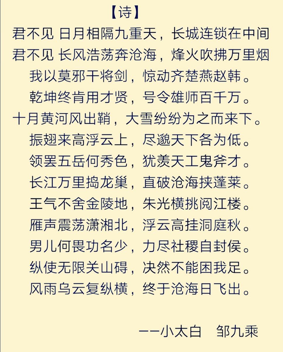 君不见 日月相隔九重天,长城连锁在中间