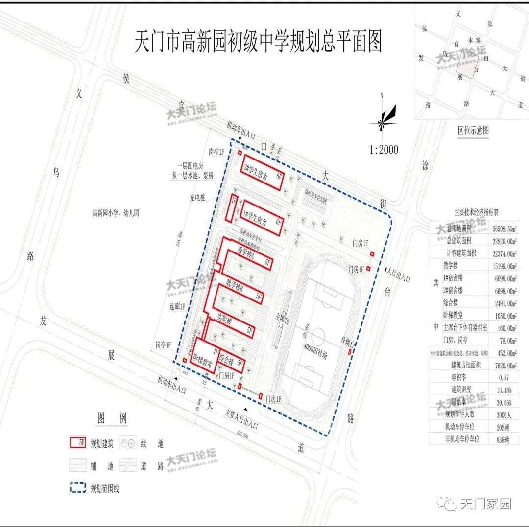 高新园初中项目位于发展大道与涂台道交汇处西北角,总建设用地面积约 25659.23方米。