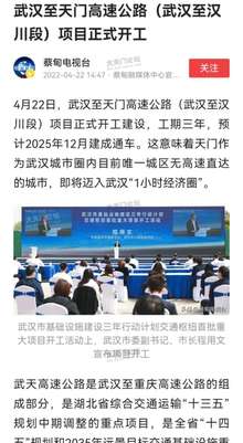 项目规划总投资约90.5亿元,在天门干驿镇、马湾镇和小板镇设三个出入口。该项目的实施,可实现天门与武汉、汉川乃至宜昌等地的快速连通,对推动天门区域经济社会发展具有十分重要的意义。
