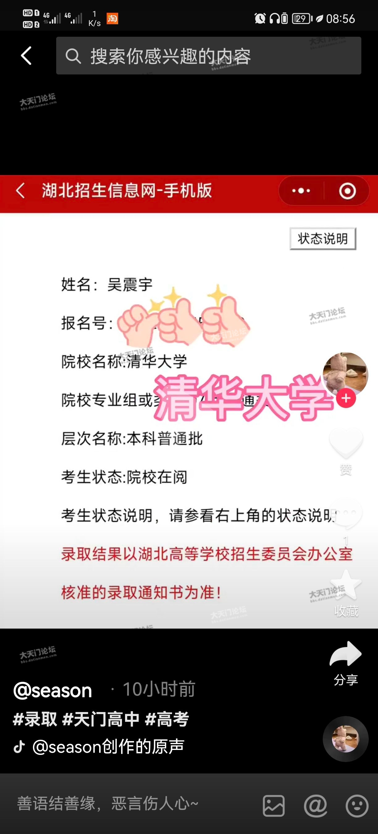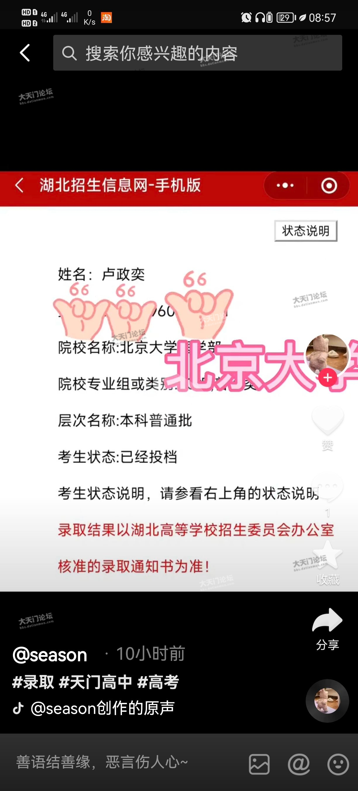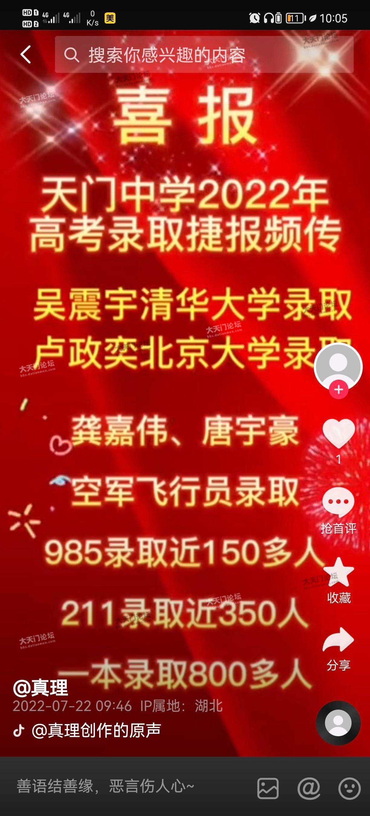 我抖音关注的天中老师也转发了这位抖主的视频,假不了。