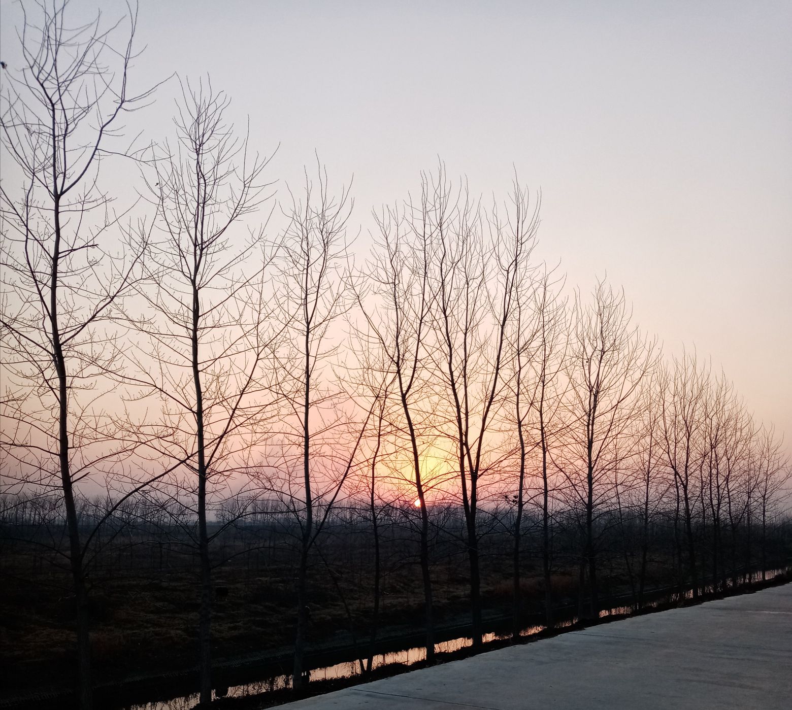 黄昏、小河和晚霞