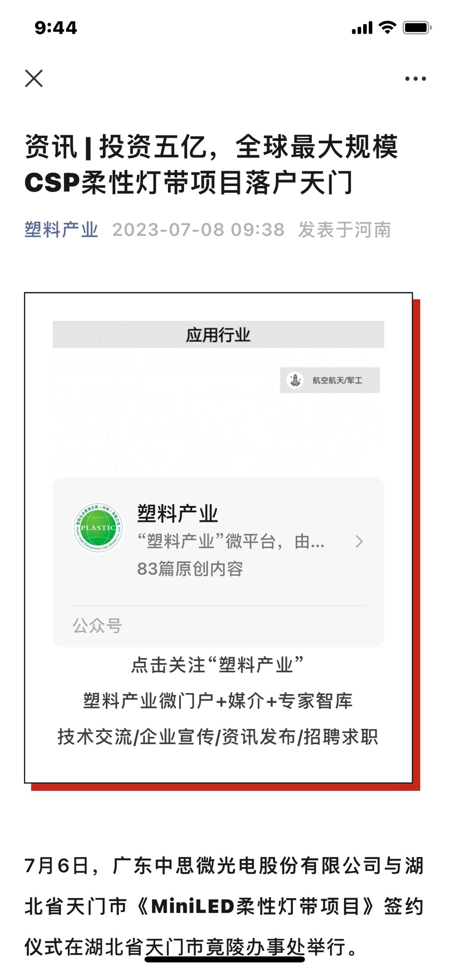 中思微光电投资5亿落户天门