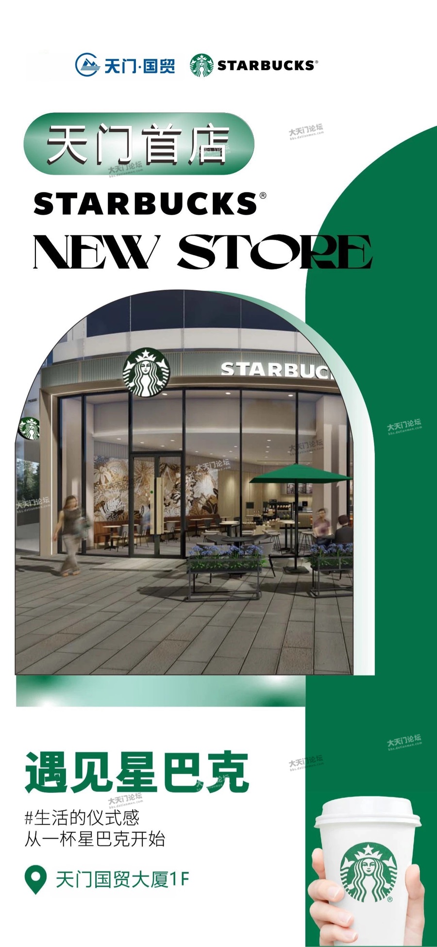 星巴克天门首店(国贸大厦店)已围挡装修,预计8月开业