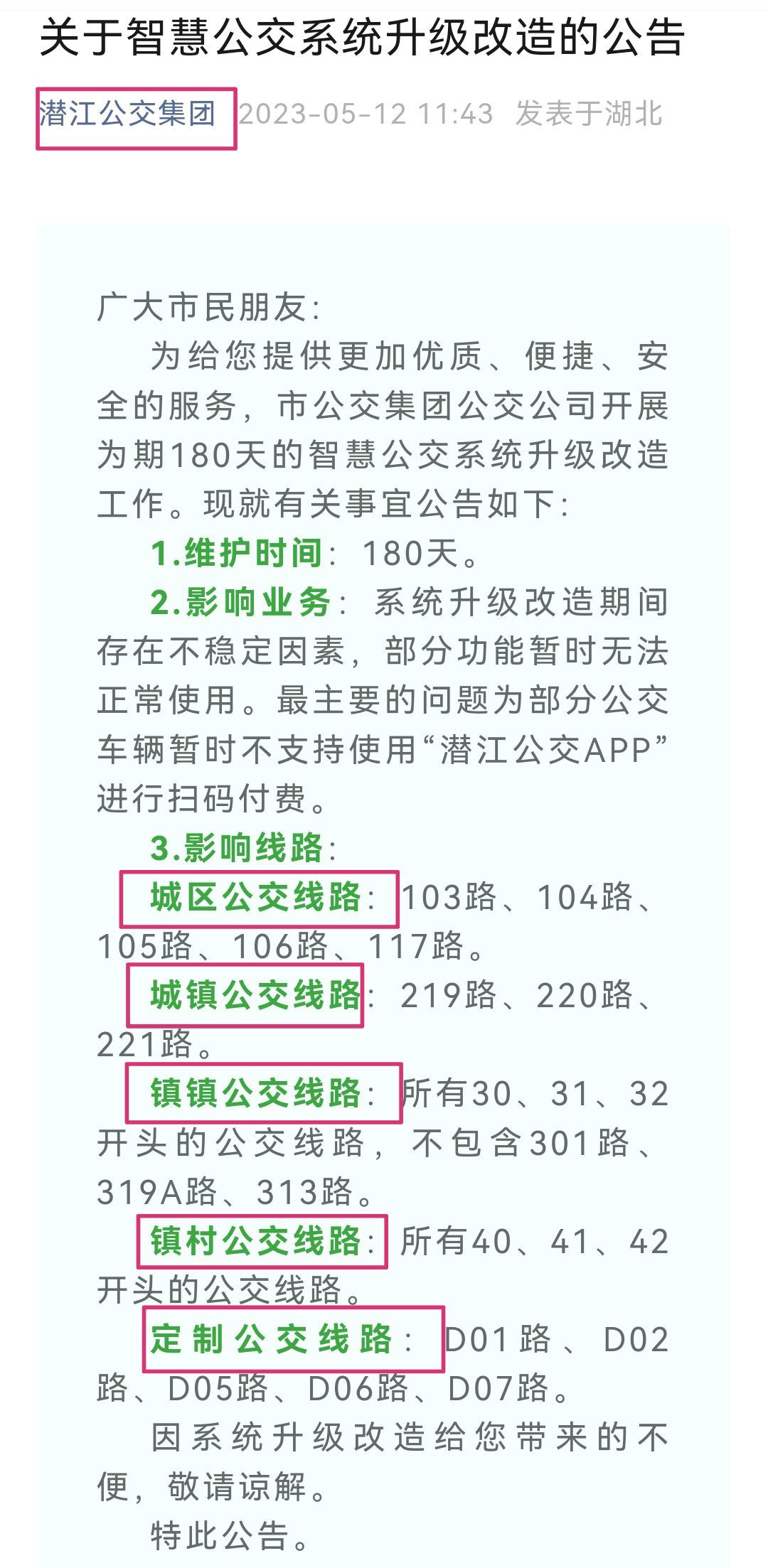 差不多距离的潜江公交只要3元,而且特殊人群有优惠。