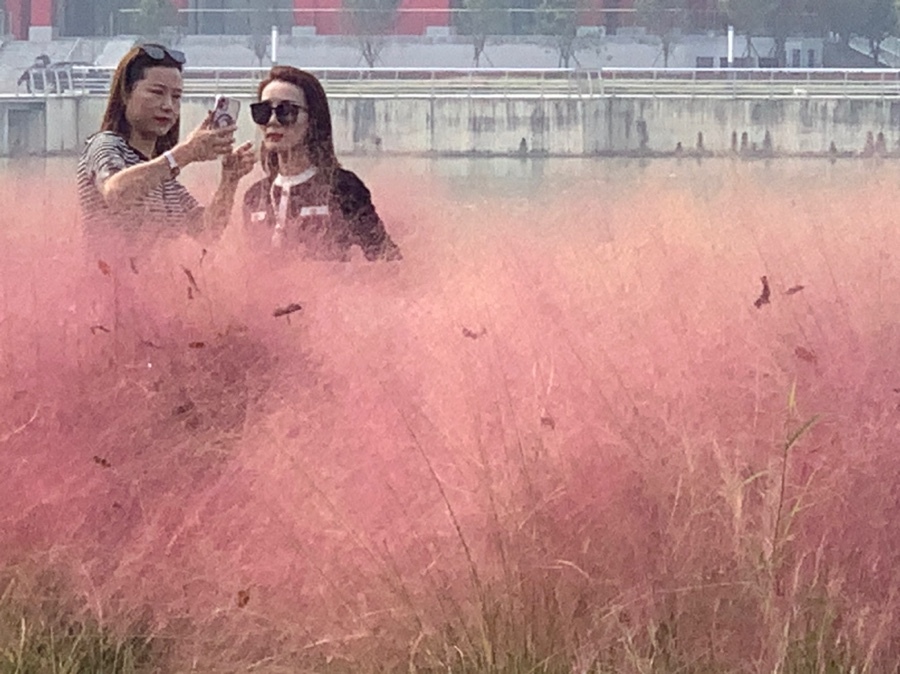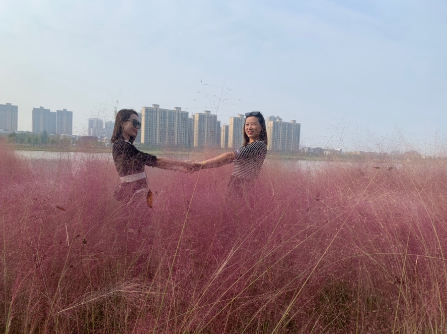 与花草作背景,而不是踏踩,更显和谐!