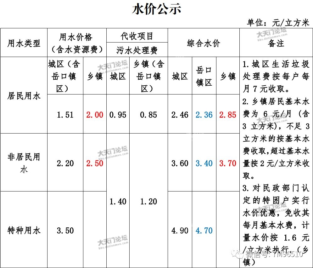 6. 污水处理费、垃圾处理费征收范围污水处理费征收范围:目前在城区及各乡镇污水收集范围内收取;垃圾处理费征收范围:城区规划区范围内且自来水供水到户的区域,岳口镇区及乡镇尚未开征;污水处理费、垃圾处理费均为我单位代收代缴。7. 工业企业优惠价格根据我市天政办发〔2023〕14号相关文件要求,即工业企业用水实行优惠价格在现行 2.2 元/立方米的基础上每吨优惠0.3 元,即工业企业用水执行水价 1.9 元/立方米,于2023年7月1日实行。8.缴费时间当月水费于次月15日前交纳,居民用户分单双月。
