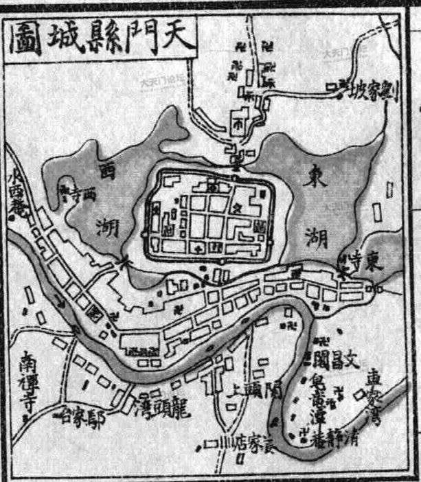 另外,我在由武昌亚新地学社绘制的《湖北分县详图》中发现了一副天门县城图,也一并分享。