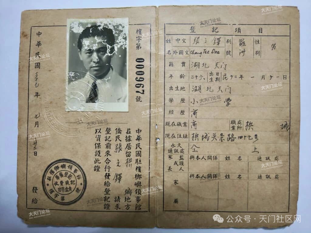 如今,他们的后代张先生手持珍贵的家族资料——中华民国时期的登记证件,希望通过热心人士的帮助,找寻祖籍湖北天门的根脉与亲人。