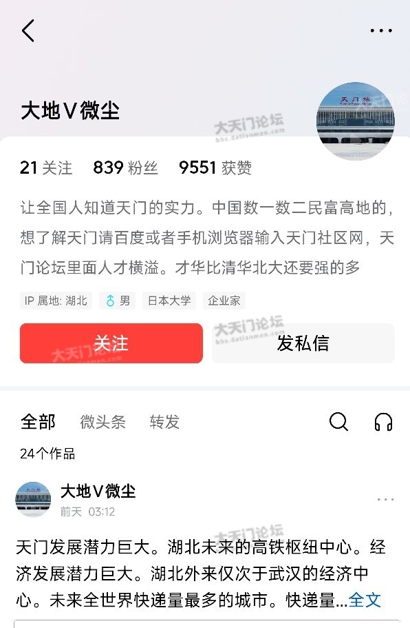 :冒充的,他头条原名“天门之巅峰”,在仙桃论坛名字叫“负责”