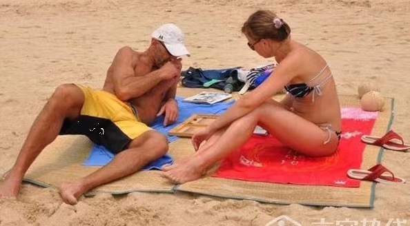 聊得正热络时,旁边那个打呼噜的大叔忽然翻了个身,大概是睡得太沉,直接从浴巾上滚了下去,“咚”的一声砸在沙堆里,满脸满身都沾了沙子。他迷迷糊糊地坐起来,眨巴着眼睛看看四周,发现我们在笑,也不尴尬,反而抓起一把沙子抹在肚皮上,冲我们做了个鬼脸。这一下,连金发女士都笑得前仰后合,我们几个更是憋不住,捂着肚子蹲在沙滩上笑出了眼泪,刚才那点局促感,早就被这突如其来的笑话冲得无影无踪。
