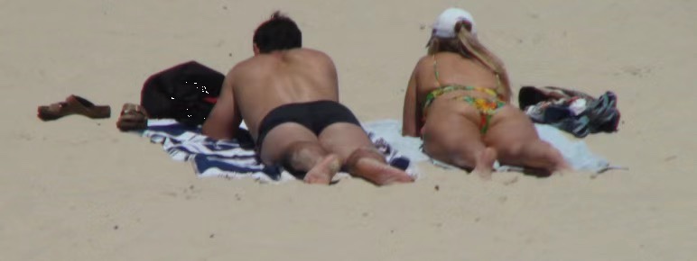往沙滩更深处走,便撞见了让我们面红耳赤又忍不住悄悄打量的一幕——几个外国人竟一丝不挂地躺在遮阳伞下晒太阳。有人摊开浴巾,四肢舒展成一个大字,闭着眼睛随着海风的节奏轻轻晃着脑袋;有人捧着一本厚书,手指划过书页时,连眉头都没皱一下,仿佛周遭的喧闹都与他无关;还有个身材健硕的大叔,干脆枕着双臂,打着响亮的呼噜,肚皮随着呼吸一起一伏,活脱脱像滩边搁浅的大海象。他们毫不在意旁人投来的目光,反倒让我们这些裹着泳衣的人,生出几分“拘谨”的局促来。