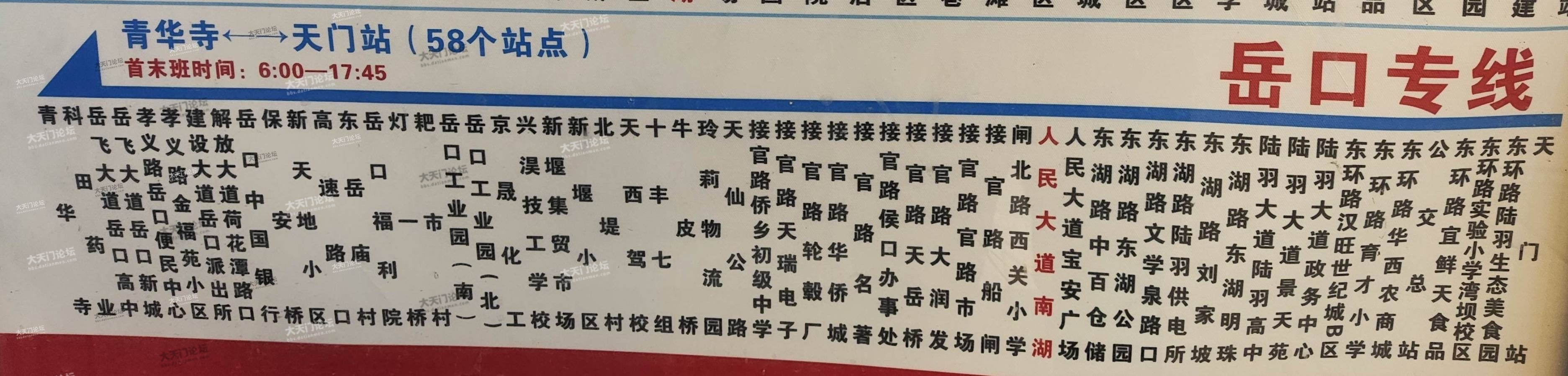 1号线 (郑场)→岳口→新堰→城区→天门站