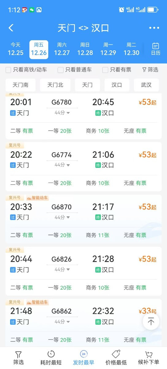 之前听说汉口至天门56元,所以上一篇帖子里写的是55到60