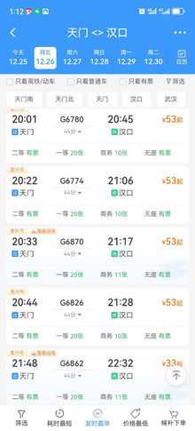 宜昌北一站直达,中途不停任何站,最快69分钟,目前只剩下商务座。