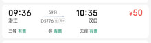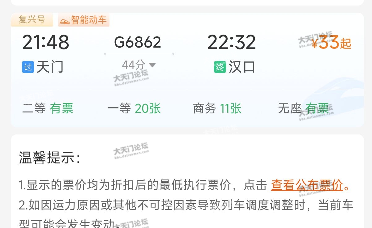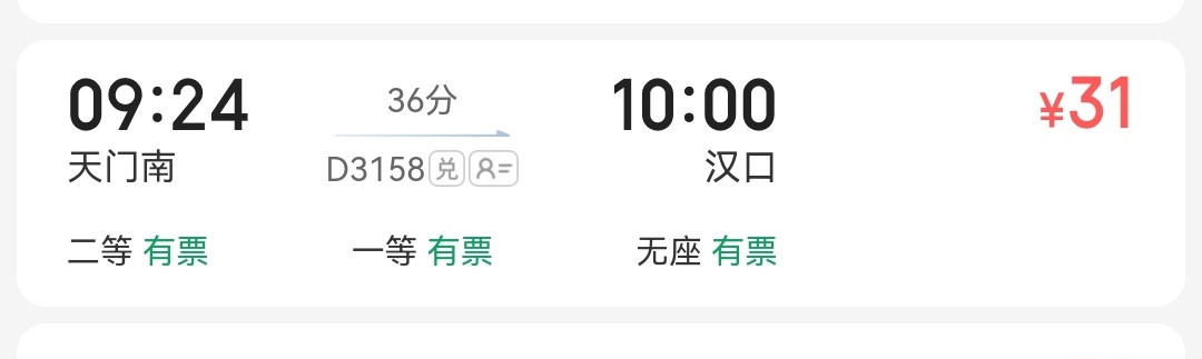 停靠汉川北的车次最快44分钟抵达汉口站,公布标准票价为72元,实际应该会日常性打折