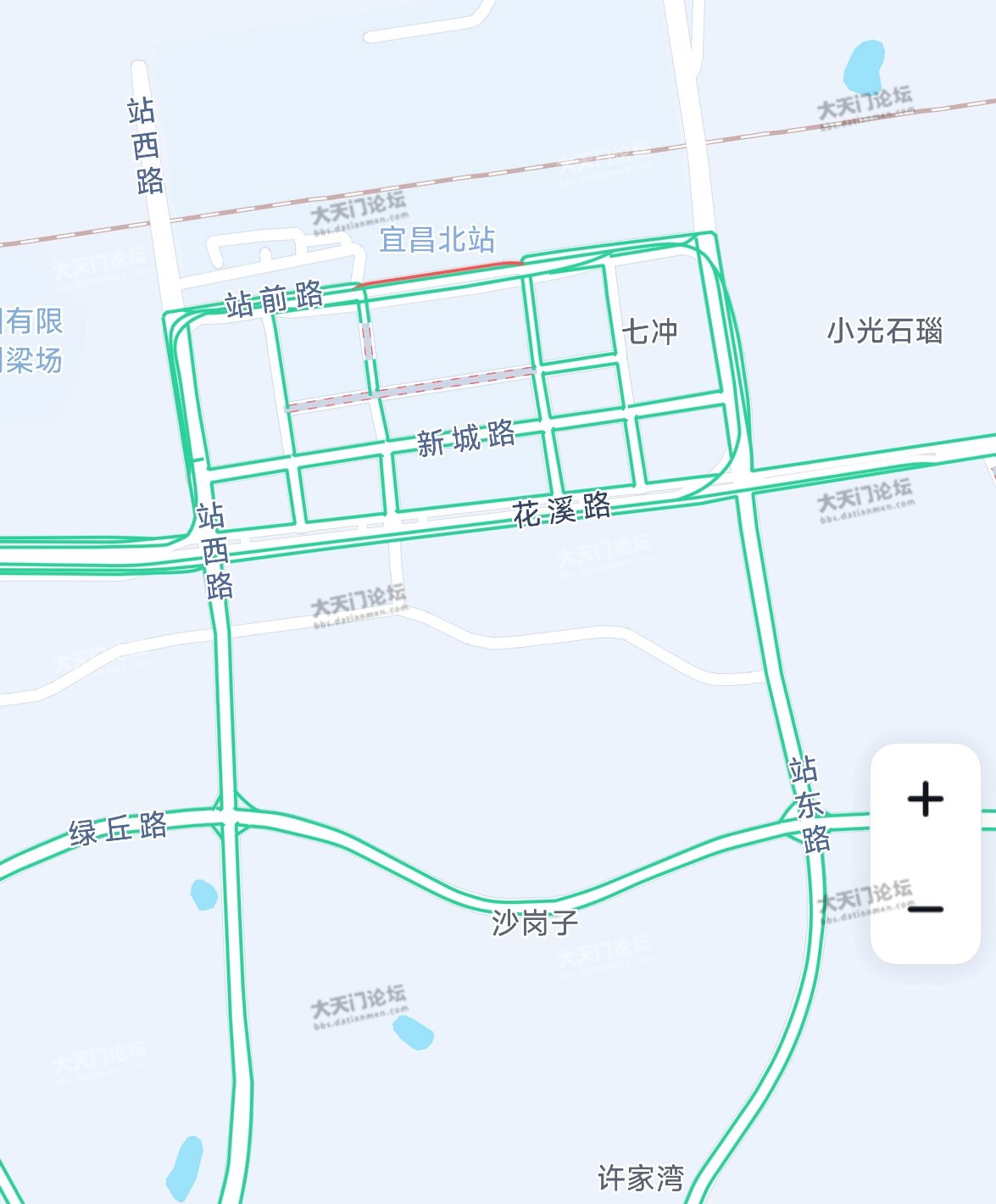 以下是各站点附近中午十二点路况,天门要抓紧时间完善高铁站附近路网,不能让车流都堵在天北路(新东环、时代大道西延)
