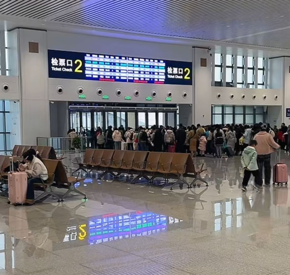 今晚高铁站人流巨大,10.5米公交车前来援助!