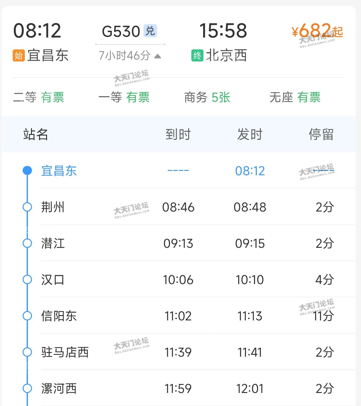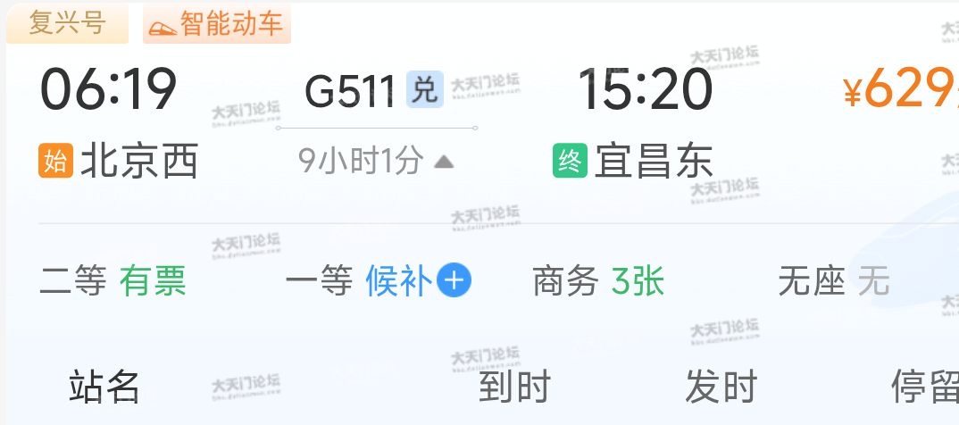 G530宜昌东至北京西,停靠荆州、潜江