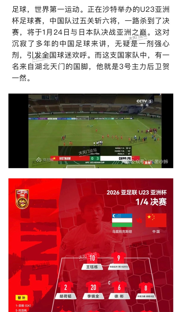 天门两人入选国家足球队!其中一人要与日本决赛……冲击亚洲冠军