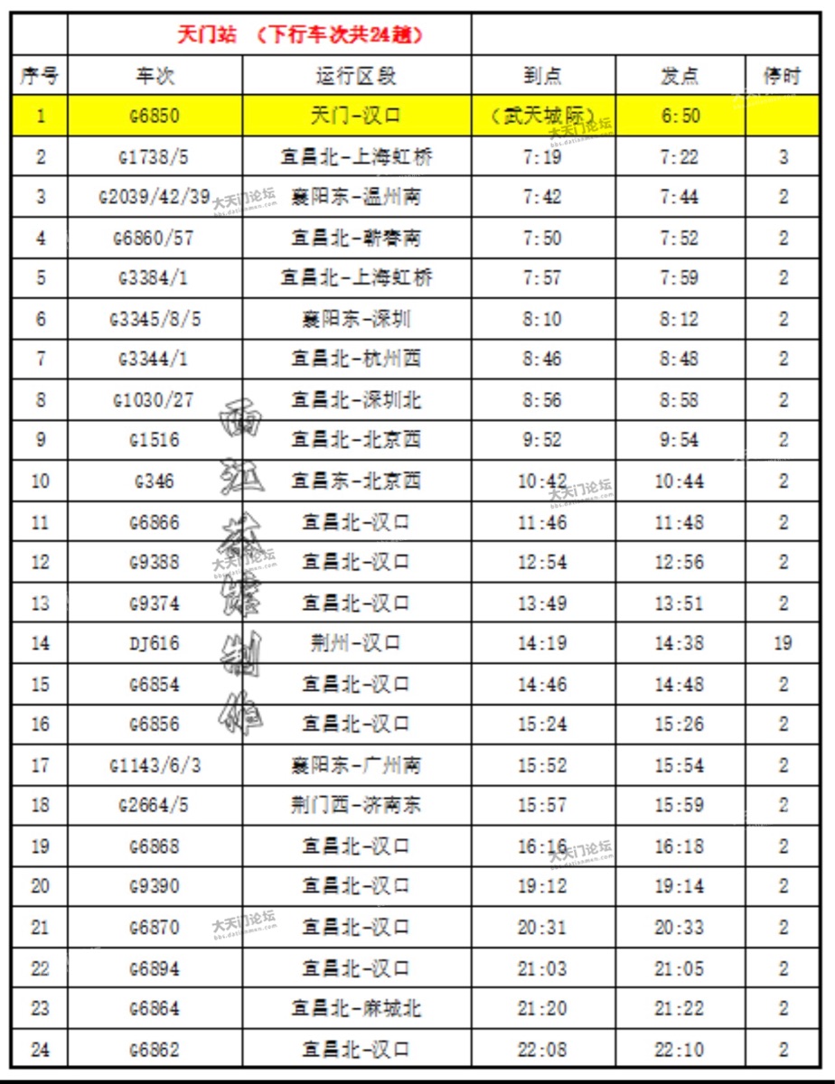 调图后 天门站车次达到46趟