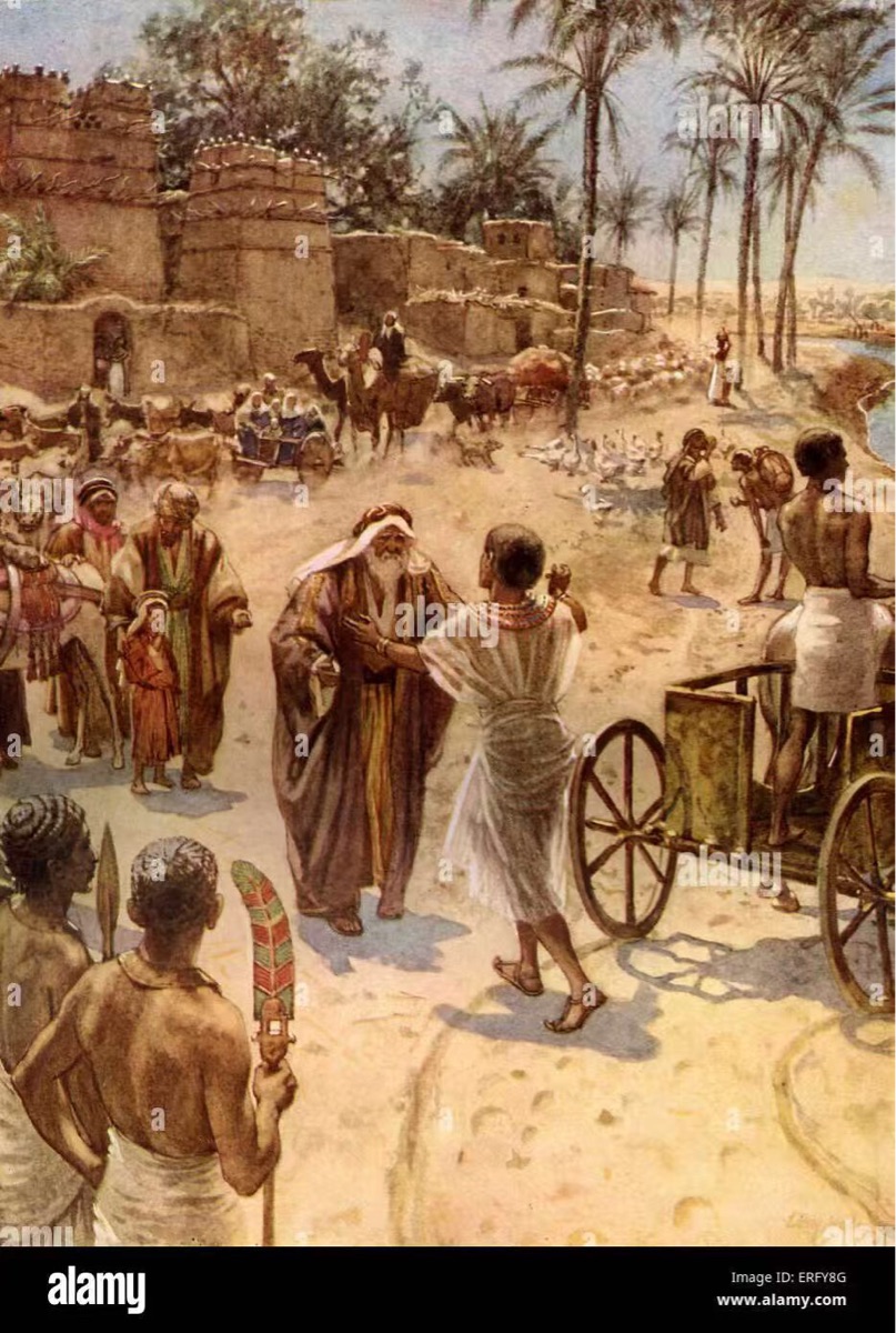 图1时任古埃及首相约瑟夫欢迎父亲雅各(以色列)的到来