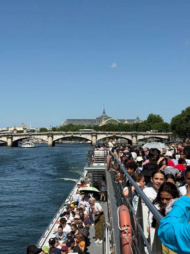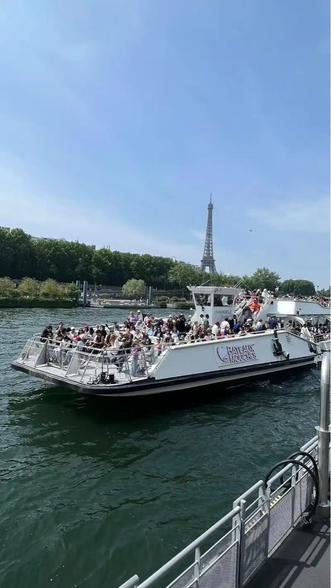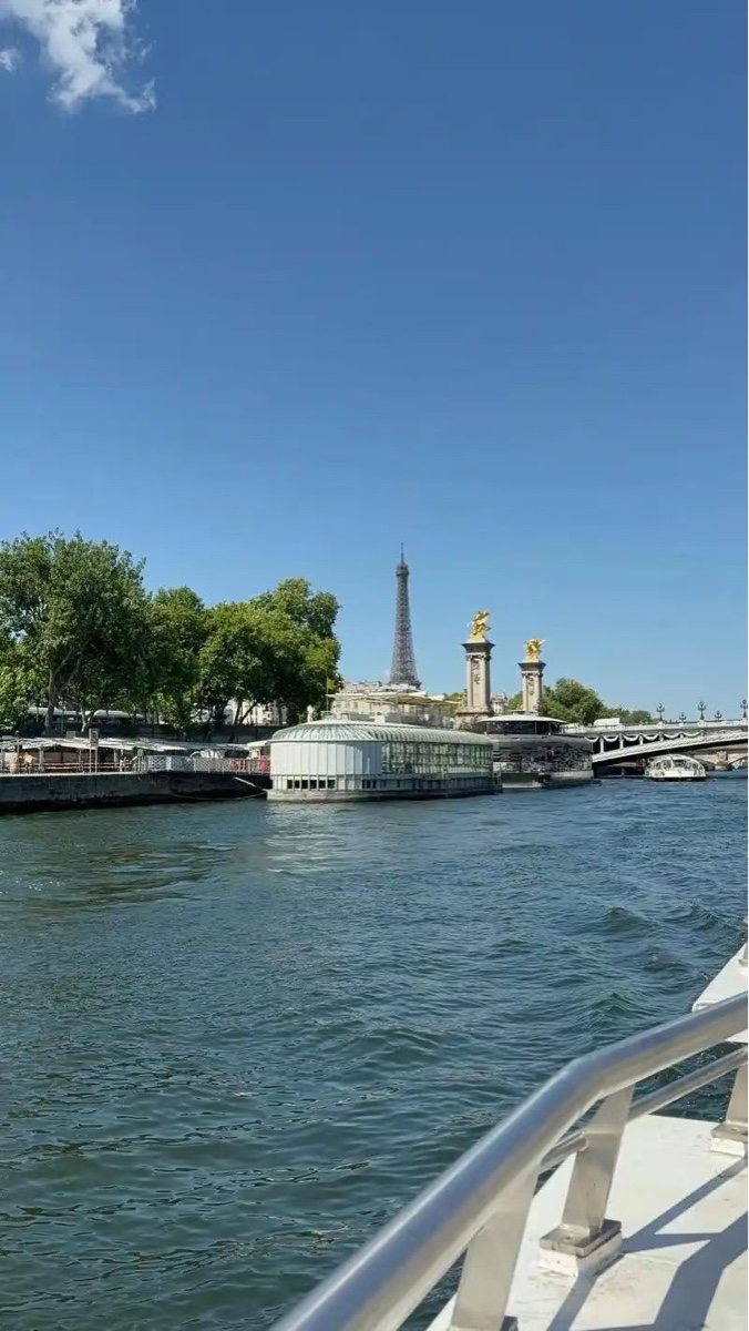 我们登上了塞纳河的游船,随着船身缓缓开动,巴黎的精华画卷在眼前徐徐展开。船头破开河水,浪花一路相伴,两岸的古老建筑依次映入眼帘:庄严巍峨的巴黎圣母院,在阳光下散发着厚重的历史气息;精致典雅的卢浮宫,藏着数不尽的艺术瑰宝;高耸的埃菲尔铁塔遥遥相望,钢铁的浪漫在河畔静静矗立;还有一座座风格各异的古桥,石拱横跨河面,桥上的雕刻精致细腻,仿佛在诉说着百年的故事。