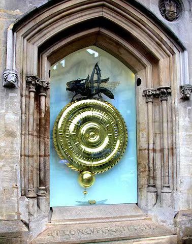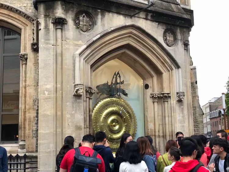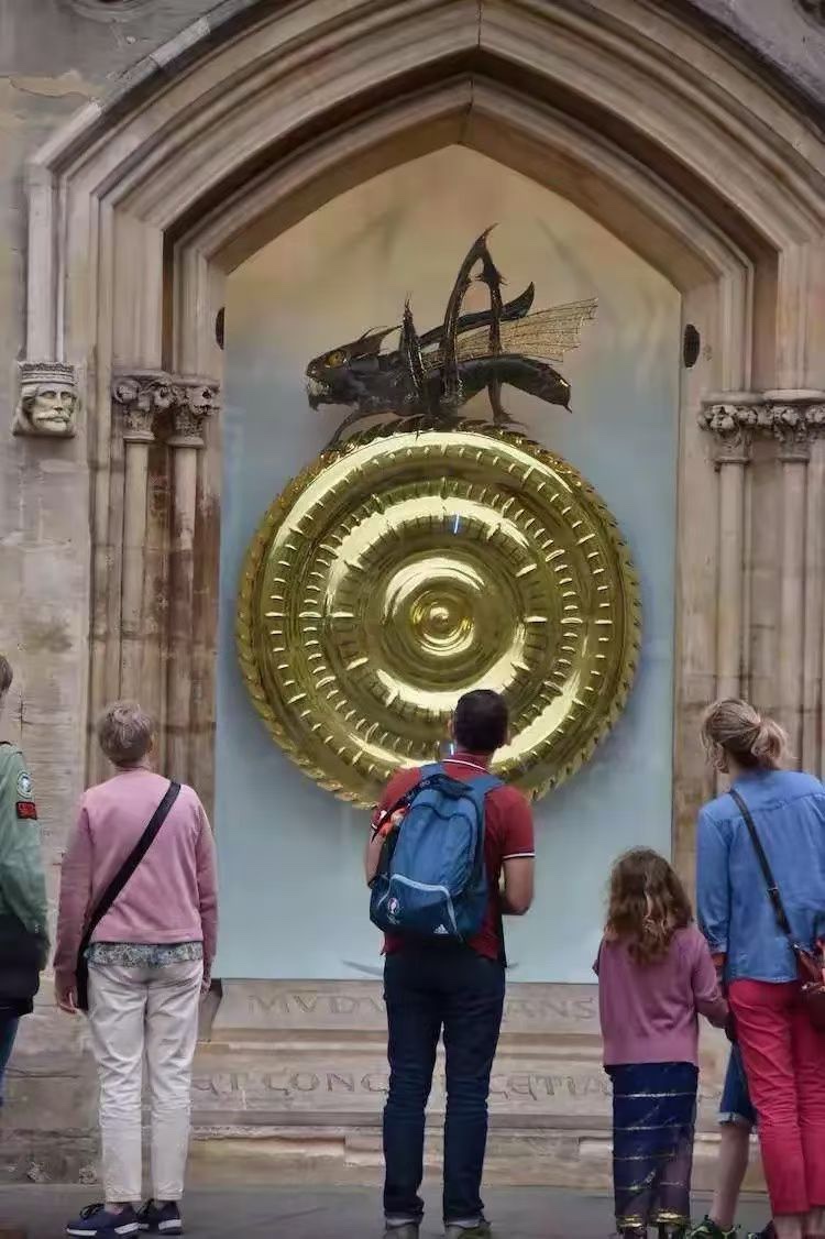 2018年9月,英爱之行的脚步,轻轻落在了剑桥大学的土地上。千年书香浸润的校园里,红砖叠着岁月,黛瓦藏着风华,康河的柔波、学院的尖顶、林荫下的石径,处处都是流淌了数百年的诗意与智慧。而在万千景致之中,一面墙壁上悬着的奇特时钟,却让我久久驻足,心头被一种无声却磅礴的力量轻轻叩击——那便是闻名于世的蚱蜢钟。