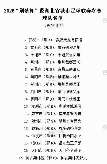 对湖北城市足球联赛参赛队排序的质疑