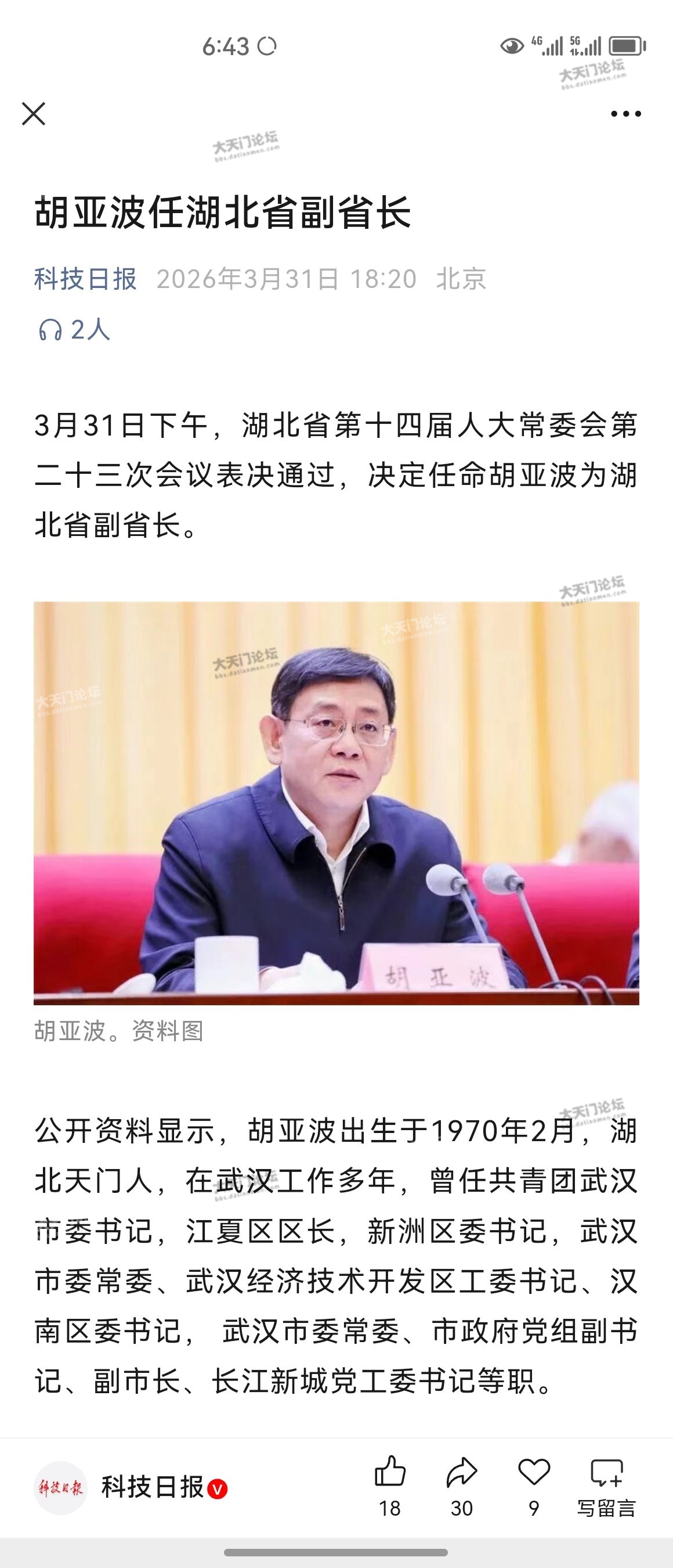天门人升至湖北省副省长