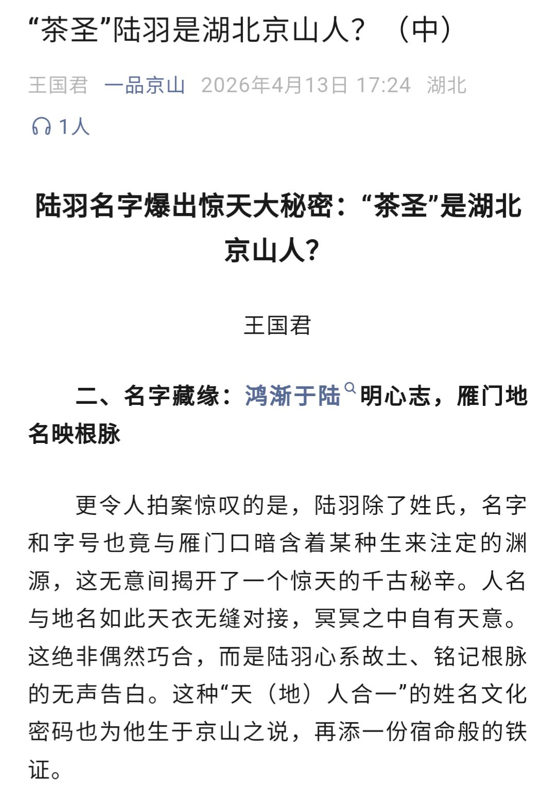 陆羽成了京山人?