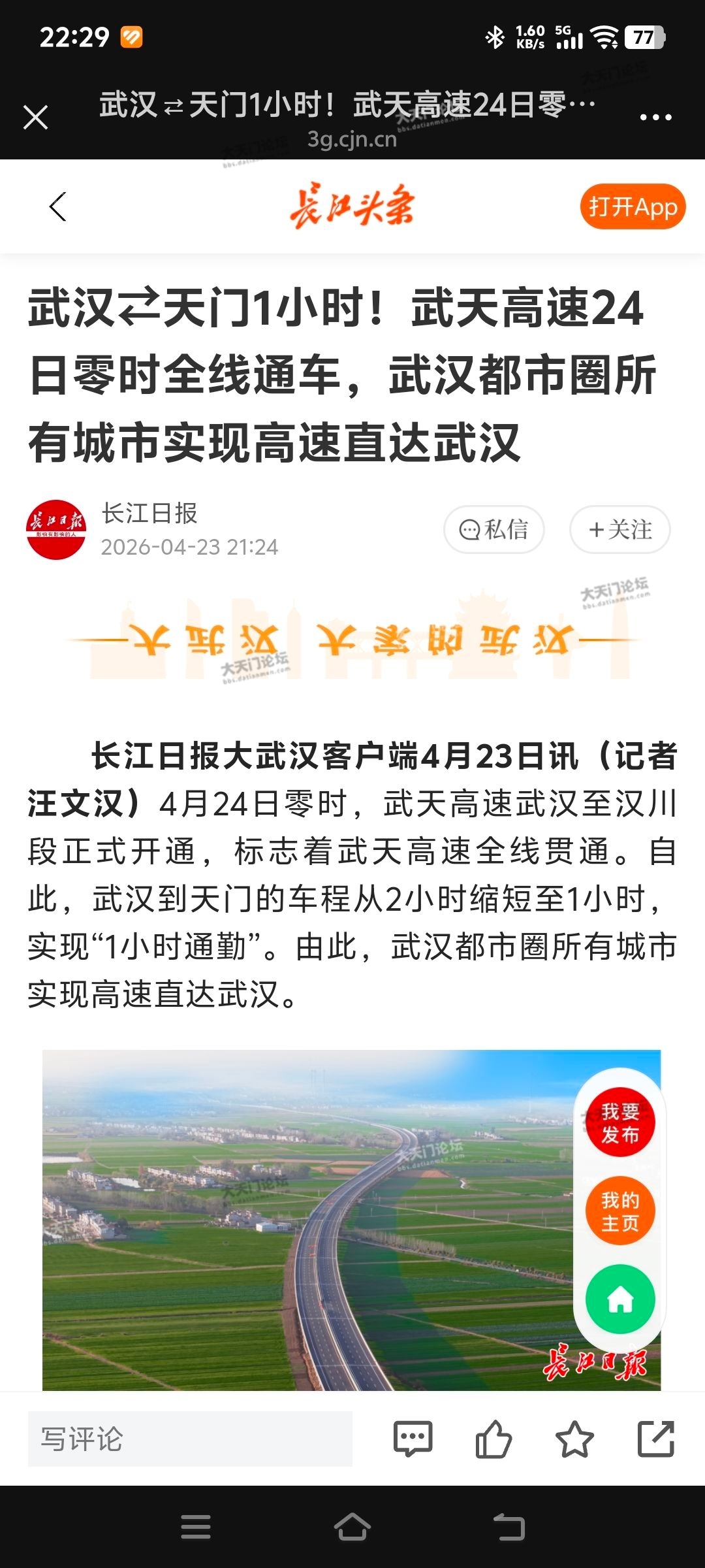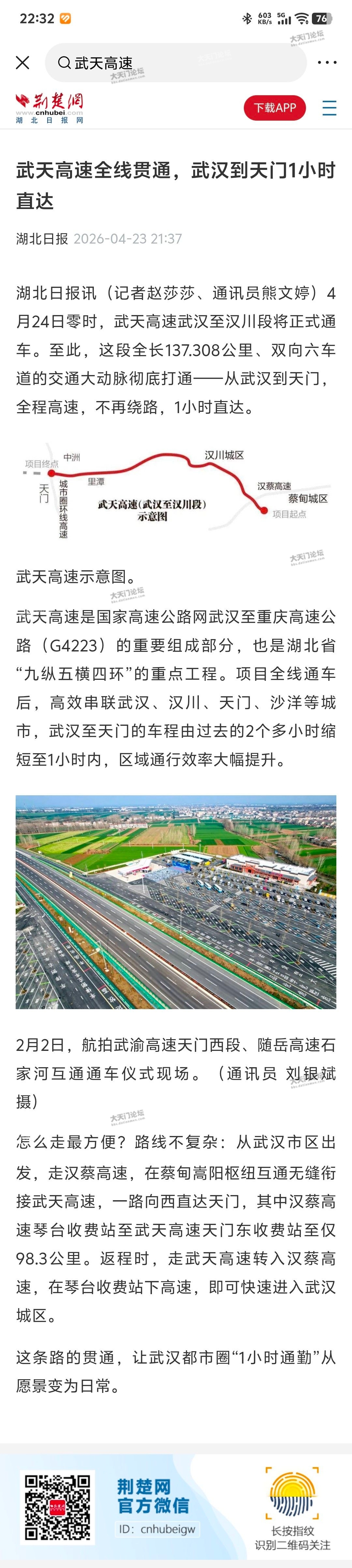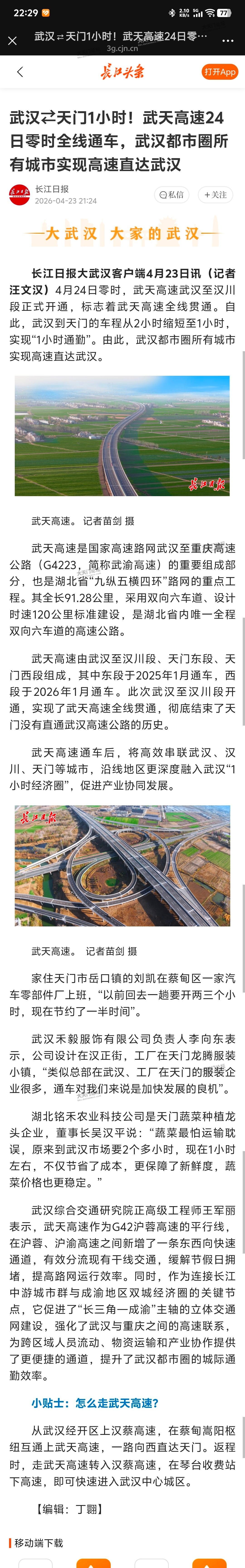 有传4月23日22时武天高速武汉至汉川段通车,待网友核实
