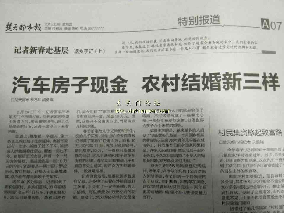 楚天都市报记者看天门——农村结婚新三样:车、房、现金