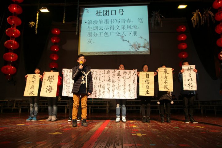 1月11日,华泰中学在学校礼堂分别举行了七、八年级社团成果展示活动,上午由八年级学生展示,下午由七年级学生展示。活动过程中,24个社团依次进行展示。参演学生精神饱满、自信大方,所有节目均由学生自导自演完成,形式多样,充满知识性和趣味性,充分展现了华泰学子的智慧和风采。学校开展丰富多彩的社团活动,开阔了学生的视野,启迪了学生的智慧,陶冶了学生的情操,促进了学生的全面发展,体现了学校“为学生成长服务”的办学思想。七年级文学社团朗诵表演八年级文学社团表演七年级象棋社团学生作介绍八年级象棋社团学生作介绍七年级围棋社团学生作介绍八年级围棋社团学生进行展示七年级英语口语社学生演唱英文歌曲八年级英语口语社学生进行英语演讲七年级播音主持社团诗朗诵八年级播音主持社团诗朗诵七年级演讲口才社展示辩论赛八年级演讲口才社诗朗诵七年级书法社团学生展示书法作品 八年级书法社团学生展示书法作品七年级创意手工社学生展示作品八年级创意手工社学生展示作品七年级吉他社团学生吉他弹唱八年级吉他社团学生表演八年级话剧表演社团学生表演八年级话剧表演社团学生表演七年级传统游戏社进行展示七年级传统游戏社进行展示