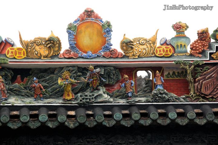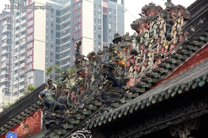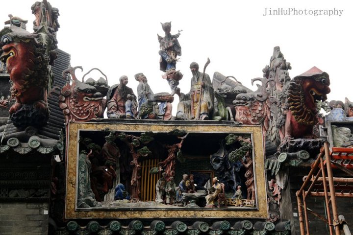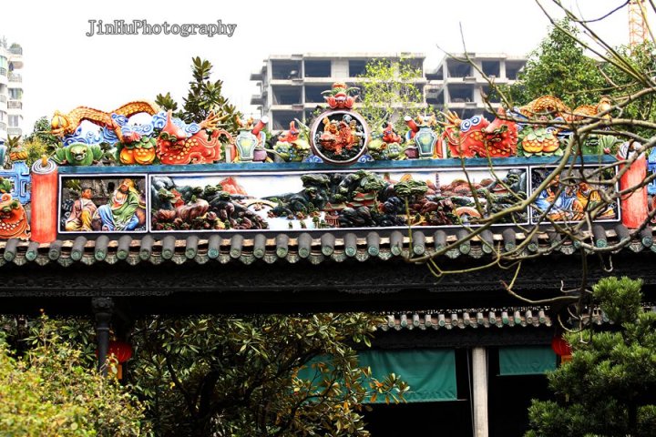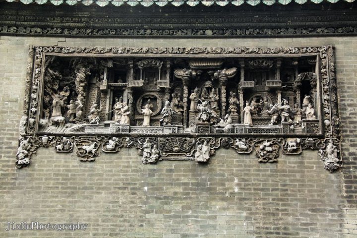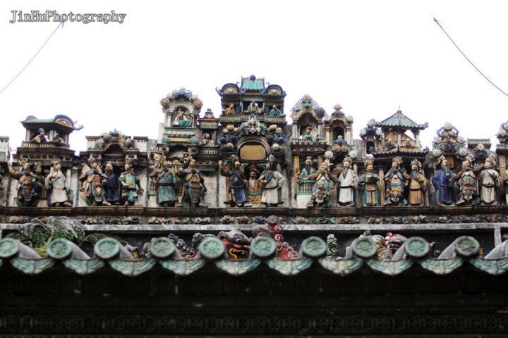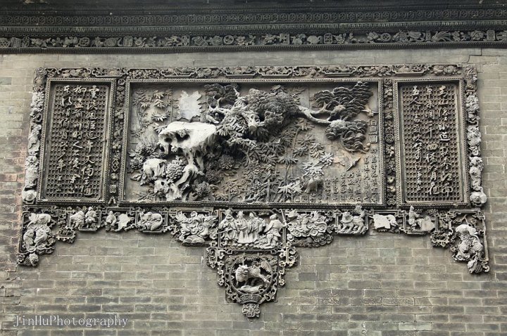广州陈家祠堂又名陈氏书院,位于广州中山七路,筹建于清光绪十六年(1890),光绪二十年(1894年)建成,是当时广东省72县陈姓人氏合资兴建的合族祠堂,其建立主要为参与捐资的陈氏宗族子弟赴省城备考科举、候任、交纳赋税、诉讼等事务提供临时居所。作为捐资的回报,这些陈氏宗族可以将其祖先牌位放到陈氏书院的神龛内供奉。陈家祠是广东现存祠堂中最富有广东特色的艺术建筑群,布局严整,装饰精巧,富丽堂皇,是全国文物重点保护单位。陈家祠堂为三进式庭院,由九堂六院大小19座建筑组成。它的建筑装饰集中体现了广东民间装饰艺术的精华,巧妙地采用了木雕、砖雕、陶塑、铜铁铸等工艺进行装饰,技艺巧夺天工,十分有名。陈氏书院是广东现存规模最大、保存最完整、装饰最精美的古代艺术建筑,现为广东民间工艺博物馆。(资料来源:百度)