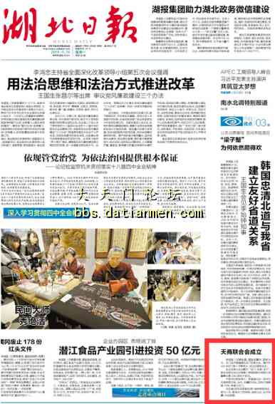今日湖北日报头版报道天商大会的消息